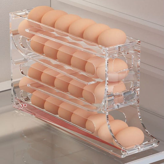 2/4-Tier Automatic Scrolling Egg Rack Holder Storage Box Refrigerator Container