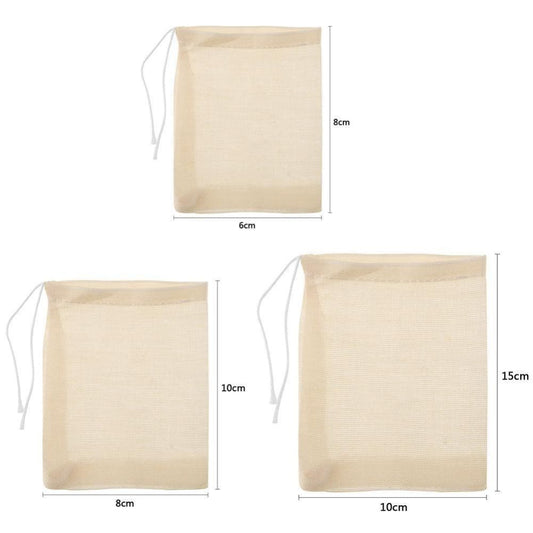 UP 50x Reusable Cotton Filter Bags 100% Cotton Muslin Spices Herbs Tea Soup Drawstring