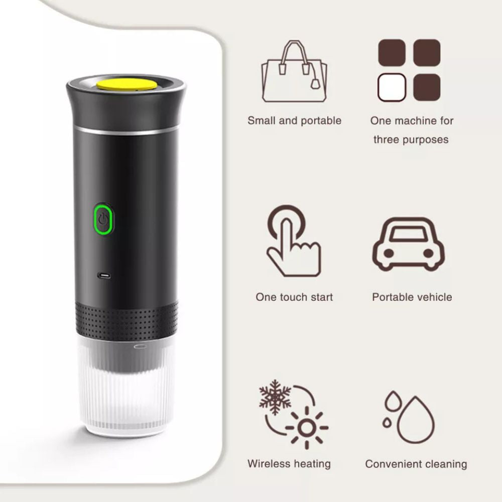 🔋 Portable Convenience – Brew your favourite coffee anywhere with this electric travel coffee machine. Perfect for camping, road trips, or the office!