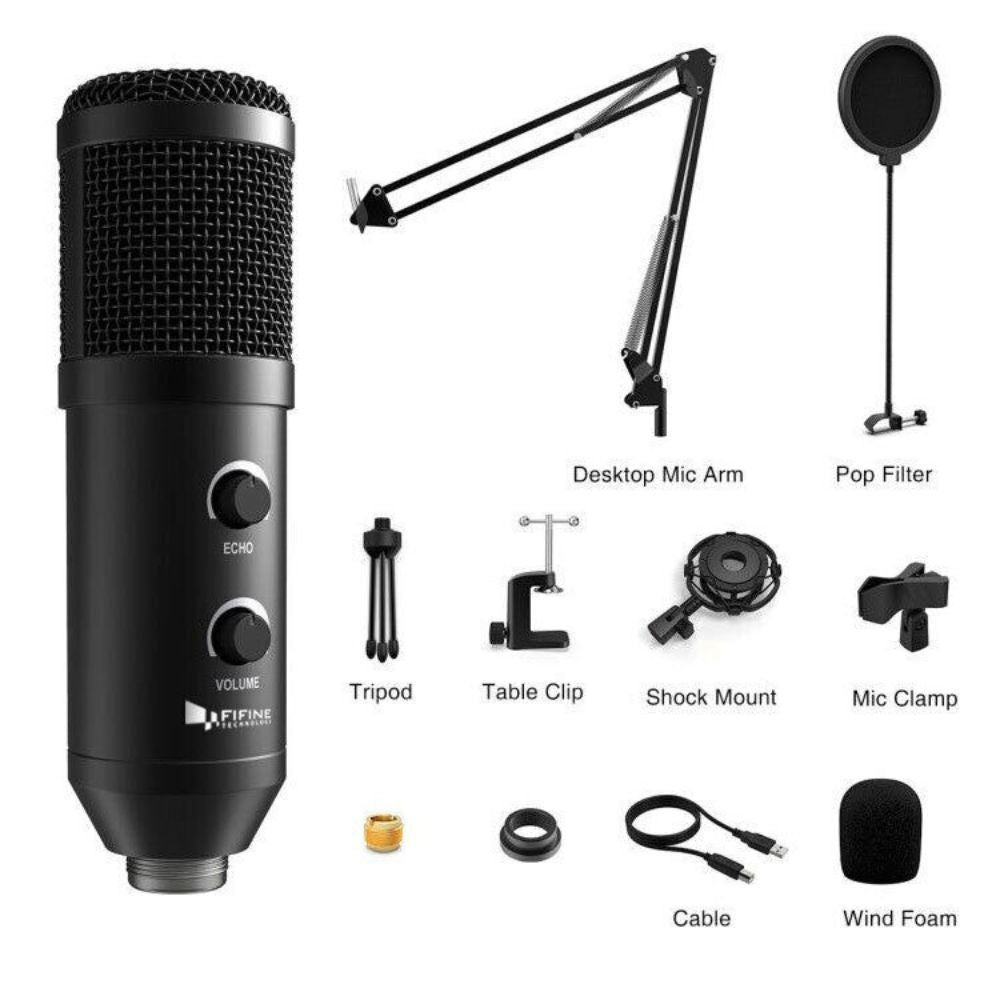 Fifine USB Desk Arm Studio Condenser Microphone Gaming Broadcast Voice Podcast